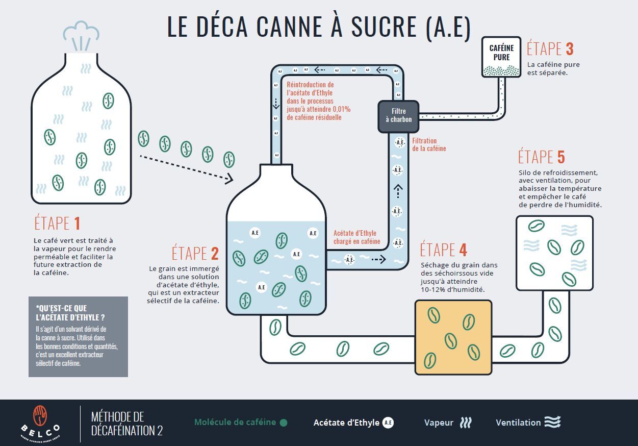 Le procédé de décaféination à l'Acétate d'Ethyle, dérivé de la canne à sucre
