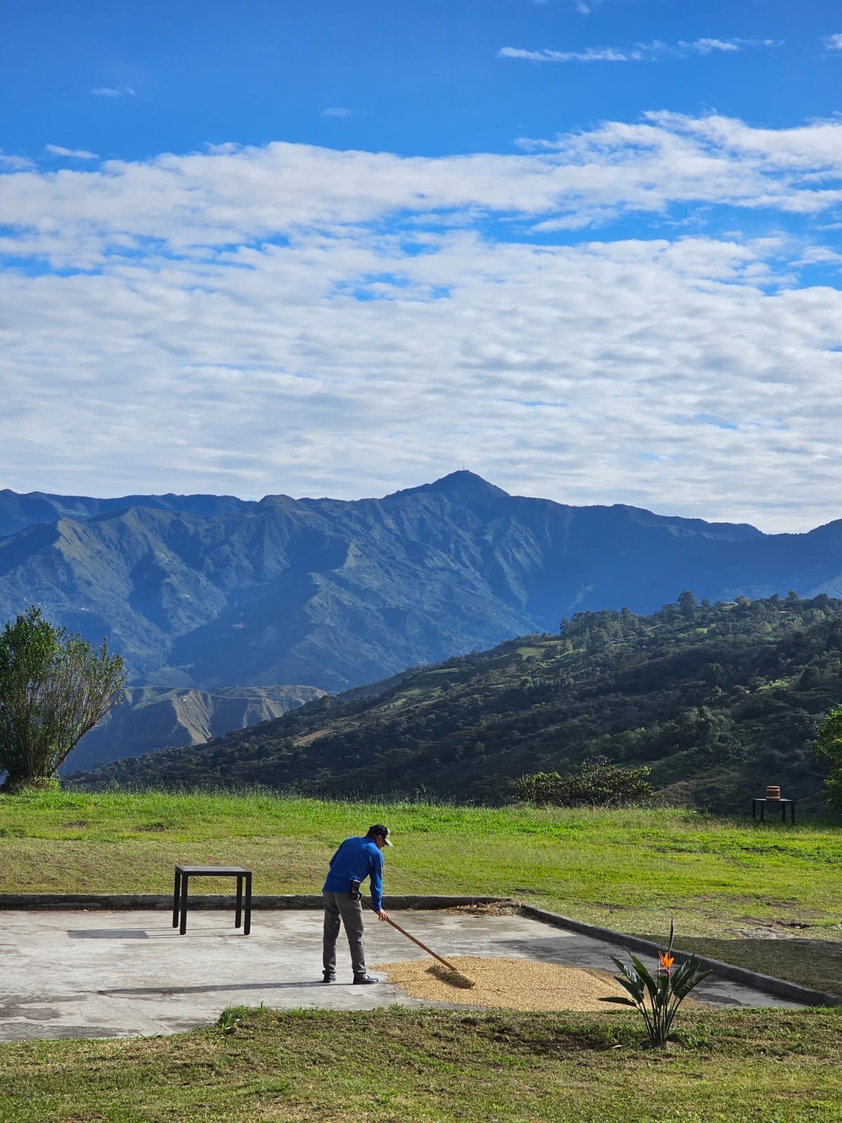 La finca Santa Maria se trouve sur le terroir de Buesaco dans le département de Nariño. La ferme profite d’une altitude de 1850 mètres et est située sur les pentes d’une zone montagneuse à la frontière de l’Equateur. Armando Benavides cultive différentes variétés : Caturra, Colombia, Casillo, Geisha, réparties sur 8 hectares. La production annuelle de la ferme s’élève à 150 sacs de 70 kg. L’agroforesterie est un levier de qualité important pour ce producteur engagé qui dénombre plus de 48 000 arbres dans sa ferme. Armando s’intéresse aussi à la culture de pommes de terre, de maïs, d’oignons et de légumes racines typiques comme le « cuy », ainsi qu'au pâturage pour les vaches laitières.