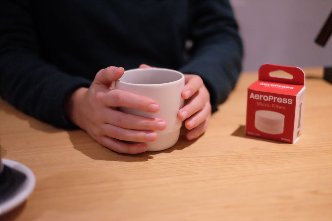 Heat the water and grind the coffee. Place your filter in the Aeropress and rinse it with hot water to remove the taste of the paper.